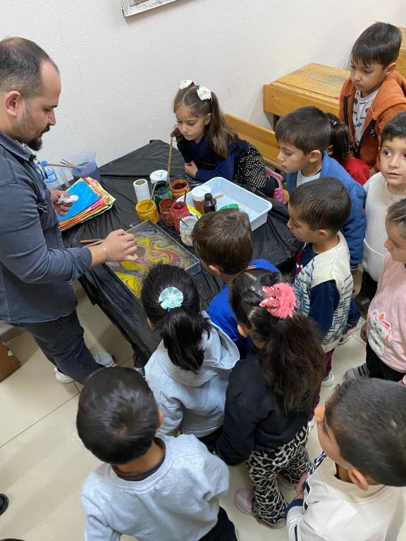 Okul öncesi farkındalık çalışması kapsamında çocuklar, kültürel mirasımızın önemli bir parçası olan geleneksel Ebru sanatıyla tanıştı; hem bu zarif sanatın inceliklerini öğrendiler hem de kendi eserlerini oluşturma heyecanını yaşadılar.